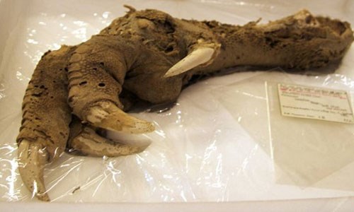 Đây là phần cơ thể còn lưu lại từ xác khô có niên đại 3.300 năm của chim moa vùng cao. Các chuyên gia không khỏi tò mò làm thế nào mà chiếc móng vuốt của chim moa còn nguyên vẹn sau 3.300 năm.