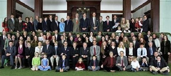 Cả gia tộc Bush chụp hình tại Phòng đỏ ở Nhà trắng vào ngày 06/01/2005.