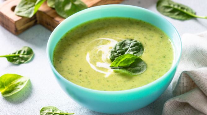 Sự kết hợp giữa rau bina và ngô tạo nên món súp có hương vị hài hòa, vừa thanh nhẹ vừa giàu dinh dưỡng. Rau bina cung cấp sắt, folate và các chất chống oxy hóa, góp phần hỗ trợ quá trình tạo máu và tăng cường sức khỏe tổng thể.
