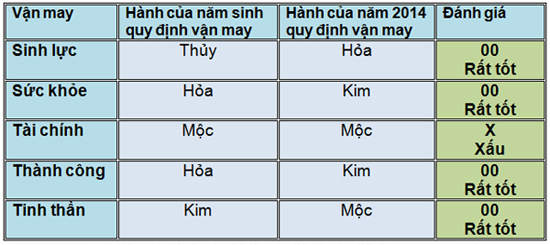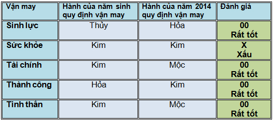 5. Tinh thần 00: Vận may này cho thấy liệu bạn có gặp những trở ngại về tinh thần trong năm hay không, và liệu bạn có thể tránh bị tổn thương nặng nề hay không. Người xưa tin rằng, tổn thương này có thể do bạn vô tình gặp phải các vong xấu lang thang trên thế gian, hay vô ý xúc phạm hoặc làm cáu giận một vị thần linh nào đó, ví dụ nói điều xấu ở chùa hay những nơi linh thiêng, vô tình đi tiểu ngoài trời mà không xin phép, vô tình làm đau những thần linh ẩn nấp trong các bụi rậm hay cây già. Kết quả là một số người đổ bệnh không rõ lý do. Điều bất hạnh này có thể xảy ra với những người mà sức mạnh tinh thần trong năm đó thấp.