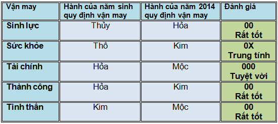 5. Tinh thần 00: Vận may này cho thấy liệu bạn có gặp những trở ngại về tinh thần trong năm hay không, và liệu bạn có thể tránh bị tổn thương nặng nề hay không. Người xưa tin rằng, tổn thương này có thể do bạn vô tình gặp phải các vong xấu lang thang trên thế gian, hay vô ý xúc phạm hoặc làm cáu giận một vị thần linh nào đó, ví dụ nói điều xấu ở chùa hay những nơi linh thiêng, vô tình đi tiểu ngoài trời mà không xin phép, vô tình làm đau những thần linh ẩn nấp trong các bụi rậm hay cây già. Kết quả là một số người đổ bệnh không rõ lý do. Điều bất hạnh này có thể xảy ra với những người mà sức mạnh tinh thần trong năm đó thấp. Ký hiệu 00 ám chỉ có những thiên thần hộ mệnh dõi theo và hỗ trợ bạn. Bạn được bảo vệ trọn vẹn trong cả năm. Điều này không chỉ đảm bảo sự an toàn về thể lực và tinh thần, nó còn bảo vệ bạn khỏi mối nguy hiểm xuất phát từ những vận may xấu về sức khoẻ, tiền bạc, thành công.