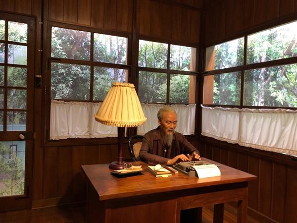 Hình ảnh Bác Hồ đang ngồi đánh máy văn kiện cuối cùng trong cuộc đời được tái hiện trong không gian 3D, có cả tiếng chim hót, tiếng máy chữ lách cách khiến khách tham quan như được sống lại khoảnh khắc bình dị mà thiêng liêng khi Chủ tịch Hồ Chí Minh viết tài liệu lịch sử.