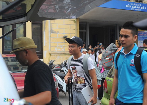 Nhóm cầu thủ Nghệ An di chuyển từ 5h sáng và có hơn 7 tiếng ngồi tàu trước khi có mặt ở Hà Nội để tập trung cùng đội tuyển Việt Nam và U23 quốc gia.