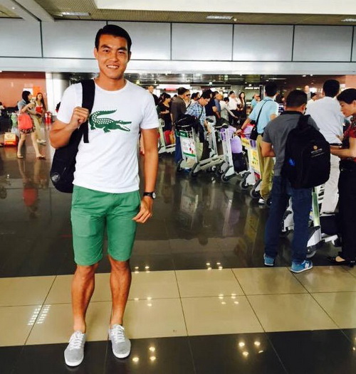 Tiền vệ gốc Nghệ An Vương Quốc Trung (trái) thuộc biên chế CLB Hải Phòng cũng di chuyển cùng nhóm cầu thủ đồng hương do đang có kỳ nghỉ ở quê nhà sau vòng 12 V.League. Anh cùng thủ môn Nguyên Mạnh được HLV Miura triệu tập cho ĐT Việt Nam dự Vòng loại World Cup 2018.