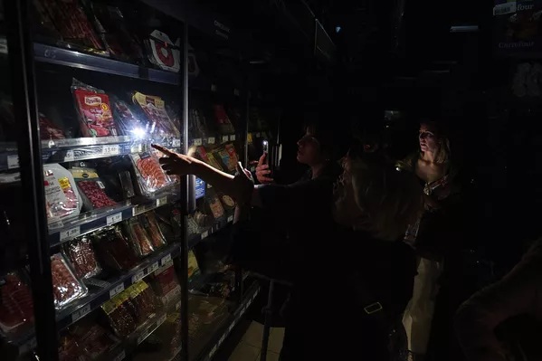 Người dân mua thực phẩm tại siêu thị trong thời gian mất điện diện rộng ở Pamplona, miền bắc Tây Ban Nha. © AP Photo / Miguel Oses.