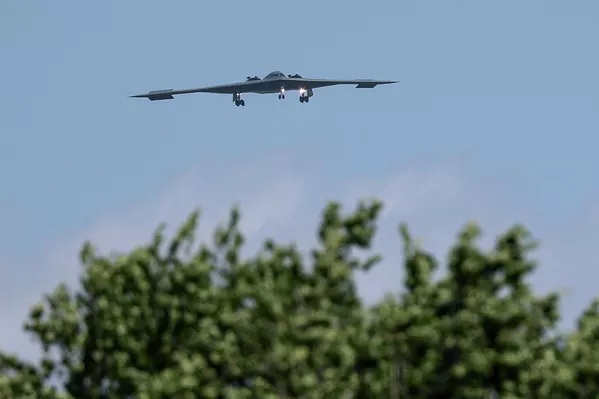 Máy bay ném bom B-2 của Không lực Hoa Kỳ sau cuộc không kích vào Iran. © AP Photo / David Smith.