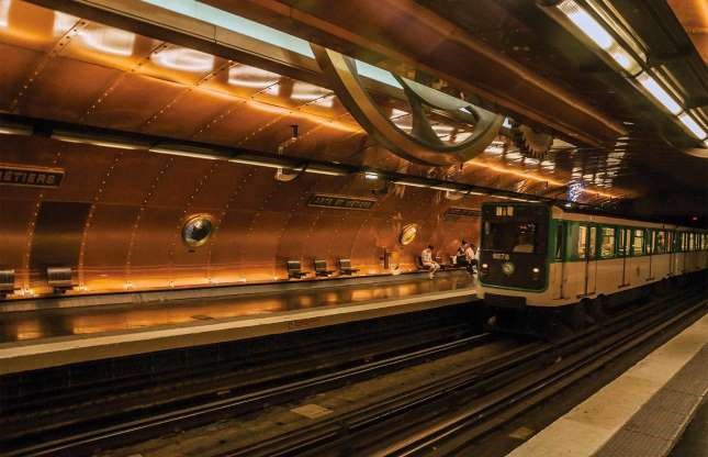 Nhà ga Arts et Métiers, Paris, Pháp: Nội thất của ga Arts et Métiers giống như một chiếc tàu ngầm kỳ ảo, được thiết kế bởi nghệ sĩ người Bỉ François Schuiten. Nơi đây có những bức tường ốp đồng lấy cảm hứng từ con tàu ngầm Nautilus của Jules Verne (tiểu thuyết Hai vạn dặm dưới đáy biển), với ròng rọc và bánh răng khổng lồ ló ra khỏi trần hình vòm.