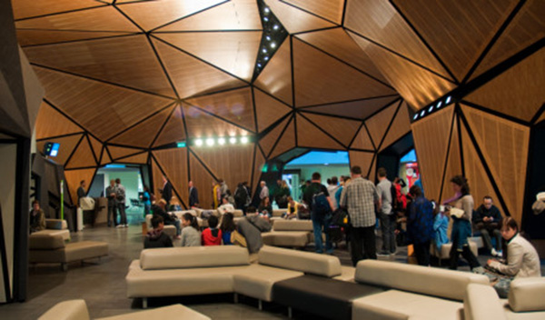 Sân bay Quốc tế Wellington International, New Zealand. Thiết kế được lấy cảm hứng từ những con quái vật biển huyền bí với phía ngoài là mô hình vách đá, làm từ đồng tấm để phản xạ ánh sáng.