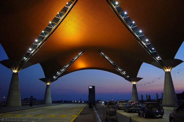 Sân bay Marrakesh Menara, Morocco. Thiết kế các mẫu ren khảm tìm thấy trong văn hóa kiến trúc Hồi giáo làm cho tòa nhà rất đẹp khi ánh sáng chiếu vào.