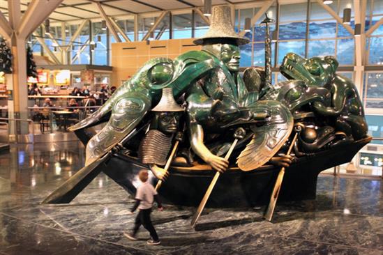 Sân bay Vancouver luôn nằm trong top các sân bay tốt nhất thế giới. Đây là nơi bạn có tìm thấy vô số các tác phẩm nghệ thuật về văn hóa châu Mỹ bản địa. Một trong những điểm ấn tượng nhất là chiếc canoe dài 10m. Nhưng điểm ấn tượng hơn cả chính là bể thủy cung dung tích 114,000 lít bên nhà chờ quốc tế.