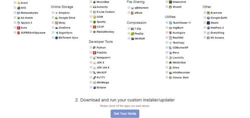 Với Ninite, bạn có thể dễ dàng cài đặt hoặc cập nhật các phần mềm phổ biến chỉ trong một cửa sổ duy nhất. Điều đặc biệt là sau khi người dùng click chọn một phần mềm, Ninite sẽ tải về một tệp tin cài đặt và tự động thực hiện cài đặt. Người dùng sẽ không cần phải thực hiện thêm bất kì một thao tác nào khác và điều này sẽ giúp bạn tiết kiệm kha khá thời gian.