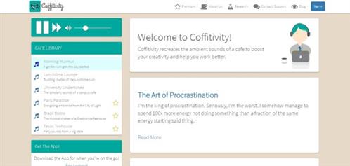 Nếu bạn thường xuyên phải làm việc một mình trong những căn phòng yên tĩnh, có thể bạn sẽ thích những âm thanh môi trường mà Coffitivity mang đến. Theo đó, Coffitivity mô phỏng những âm thanh ở trong một quán cà phê. Nghe thì có vẻ kì lạ nhưng nó thực sự có thể giúp bạn làm việc hiệu quả hơn như nhiều nghiên cứu đã chứng minh. Những âm thanh môi trường này sẽ giúp đầu óc bạn hoạt động, cởi mở và khai thông ý tưởng.