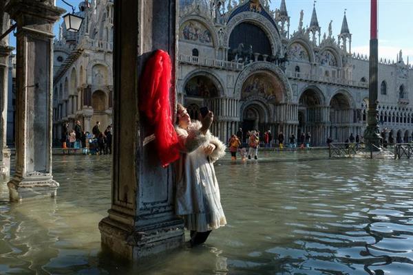 Tuần vừa qua, thành phố Venice (Italia) đã "chìm" trong cảnh ngập lụt nghiêm trọng nhất trong vòng 150 năm qua. Tuy vậy, những người dân tại đây vẫn vui vẻ ra phố chụp ảnh.