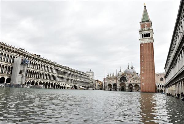 Cảnh quảng trường Saint Mark "chìm" trong nước lũ