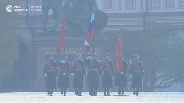 Mở màn lễ duyệt binh là đội danh dự gồm 8 chiến sĩ, họ rước quốc kỳ Nga, quốc kỳ Liên Xô cùng lá cờ chiến thắng trong bảo tàng ra ngoài Quảng trường Đỏ.