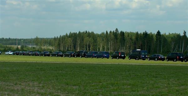 Đoàn xe đặc chủng của Tổng thống Nga Putin trên đường tới Phủ Tổng thống Phần Lan. Mặc dù chuyên cơ hạ cánh xuống sân bay Helsinki muộn gần một tiếng so với dự kiến, nhưng ông Putin dự kiến sẽ có mặt tại Phủ Tổng thống Phần Lan trước nhà lãnh đạo Mỹ. Tổng thống Donald Trump đã gặp Tổng thống Phần Lan vào buổi sáng 16/7, sau đó ông trở về khách sạn nghỉ trưa.