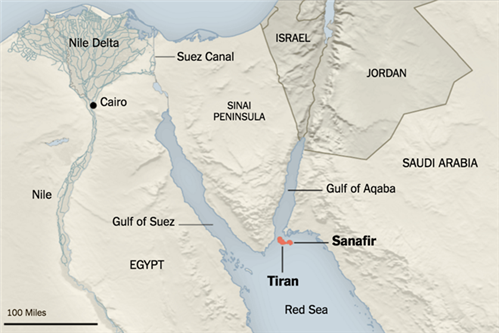 Vị trí 2 đảo Tiran và Sanafir. Đồ họa: New York Times