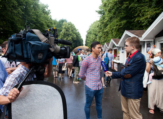 Phóng viên  kênh Truyền hình Nga (Rossia) phỏng vấn bếp trưởng Nguyễn Như Hoàng ngay từ lúc khai mạc Festival