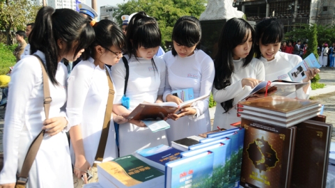 Nhiều bạn trẻ đến triển lãm các tư liệu mới nhất liên quan đến chủ quyền của VN đối với quần đảo Hoàng Sa. Ảnh: Đăng Nam/ TTO