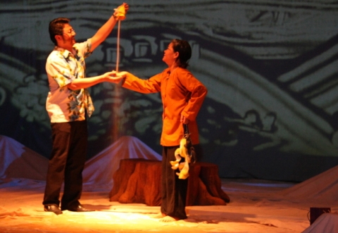 Một cảnh trong vở kịch Âm binh. Ảnh: Họa sĩ Nhím/ SGTT