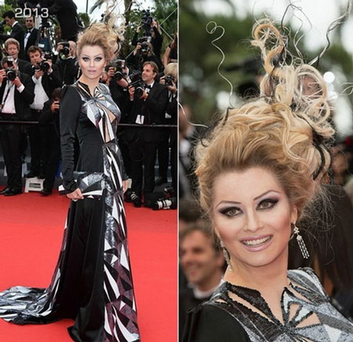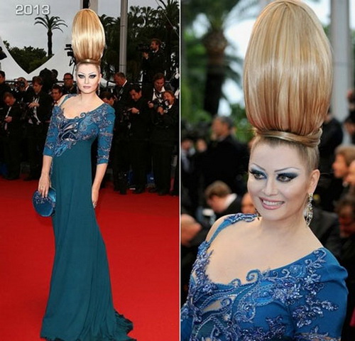 Nếu có cuộc thi bình chọn ngôi sao có kiểu tóc kỳ dị và ấn tượng nhất tại LHP quốc tế Cannes, chắc chắn mỹ nhân U50 của Nga sẽ giành giải.