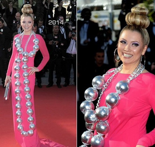 Không phải ai cũng dũng cảm dám đội nguyên một mái tóc giả như thế này lên đầu như Elena trên thảm đỏ LHP quốc tế Cannes năm 2013