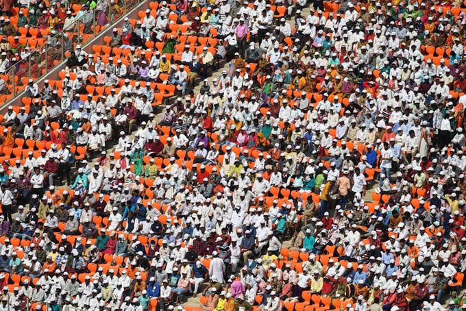 Những người ngồi nghe bài phát biểu của ông Trump trong buổi mít tinh tại Sân vận động Sardar Patel.
