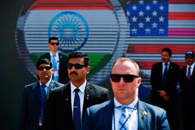 Các thành viên trong Cơ quan Mật vụ Mỹ và Nhóm Bảo vệ đặc biệt của Ấn Độ tại buổi mít tinh.