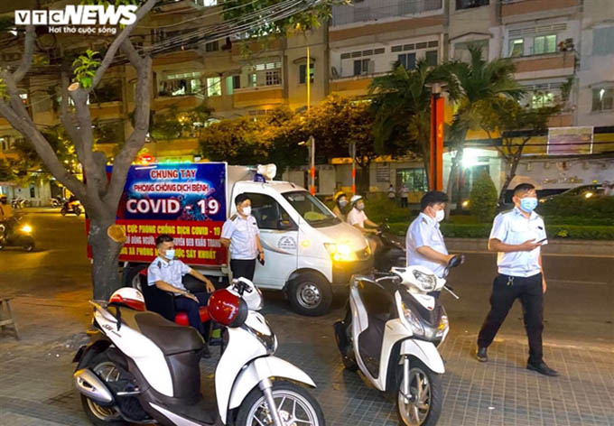 Ghi nhận của PV VTC News tối 18/2, dọc các tuyến phố là tụ điểm ăn uống, vui chơi của TP.HCM như: Phạm Văn Đồng (quận Gò Vấp), Phan Xích Long (quận Phú Nhuận), Trường Sa (quận tân Bình)... các đoàn kiểm tra công tác phòng, chống dịch COVID-19 liên tục tuần tra sát sao.