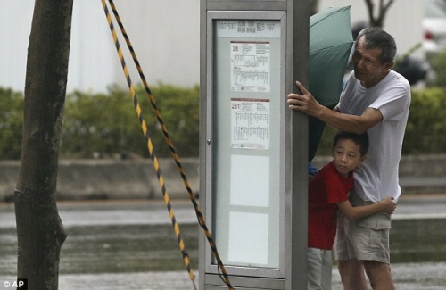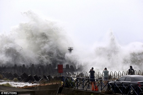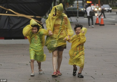 Mưa lớn đổ bộ lên đảo Đài Loan kèm siêu bão. Ảnh Daily Mail