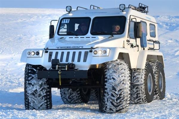 Vladimir Putin ngồi trong chiếc xe địa hình trong chuyến thăm quần đảo Franz Josef Land vào tháng 3/2017.