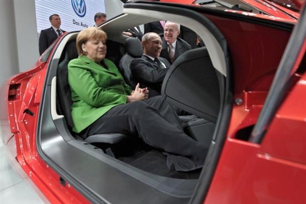 Nhà lãnh đạo Nga Putin và Thủ tướng Đức Merkel cùng ngồi trong 1 chiếc ô tô tại triển lãm thương mại Hannover Messe, tháng 4/2013.