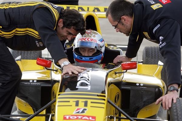 Tổng thống Nga Putin đang thử lái một chiếc xe đua Công thức 1.