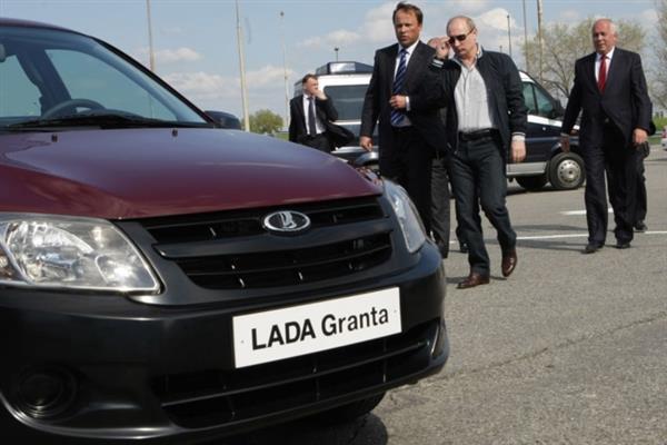 Thủ tướng Nga Putin kiểm tra một mẫu xe Lada-Garant mới.