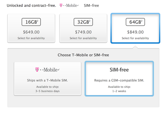 Apple đã chính thức cho phép khách hàng đặt trực tiếp iPhone 5s phiên bản GSM không khóa mạng (unlock) trên các cửa hàng trực tuyến tại Mỹ. Phiên bản này có thể sử dụng mọi sim GSM hiện nay, máy bán ra không kèm sim nhà mạng. Điều này cũng có nghĩa iPhone 5s mua trên cửa hàng trực tuyến của Apple tại Mỹ có thể dùng với các mạng di động GSM trên toàn thế giới.