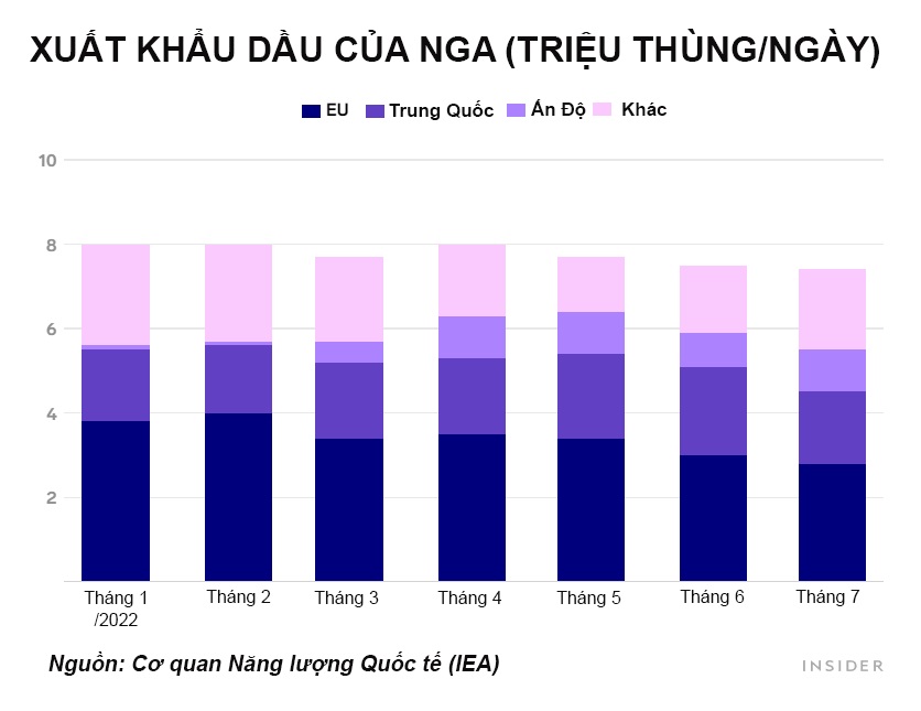 Tuy nhiên, theo dữ liệu tháng 7 của Bloomberg, Nga vẫn xuất khẩu khoảng 7,4 triệu thùng dầu mỗi ngày.