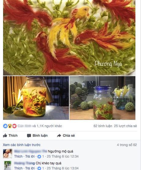 Xuất hiện trên một Hội nhóm dành cho các chị em Việt đam mê bánh trái và bếp núc, bức ảnh một bể cá rau câu giống y như thật của chị Trần Phương Nga (sinh năm 1981) ngay lập tức thu hút hàng nghìn lượt like. Tuy nhiên, đây không phải tác phẩm duy nhất của chị từng gây bão mạng xã hội như vậy.