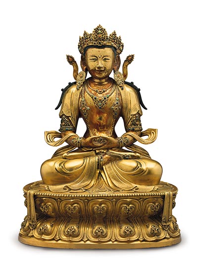 Bát cổ và tượng Phật dát vàng - 2 trong số các món đồ được đem ra bán đấu giá. Ảnh:Chinadaily.