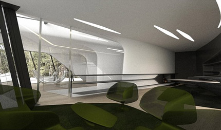 Ngôi biệt thự mới rộng hơn 2.500m2 này được gây chú ý bởi kiến trúc rất lạ mắt, giống như một phi thuyền, cả bên ngoài lẫn nội thất bên trong. Người thiết kế tòa nhà này chính là kiến trúc sư Zaha Hadid nổi tiếng, từng tạo nên nhiều nhiều công trình kiến trúc nổi tiếng như nhà hát lớn ở Quảng Châu (Trung Quốc) và sân vận động ở London (Anh).
