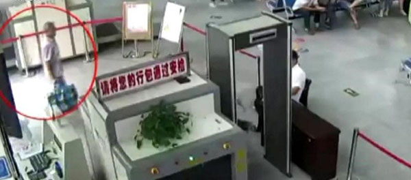Giống như bao hành khách khác, khi đi qua cửa kiểm tra an ninh, vị hành khách ngoài 50 tuổi nhìn bề ngoài rất hiền lành, chất phác buộc phải để toàn bộ hành lý, bao gồm cả túi xách vào máy soi.