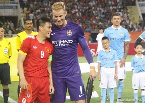 Dưới đây là trích đoạn hội thoại thú vị của Công Vinh và Joe Hart trước trận Việt Nam - Man City như sau: