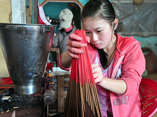 ĐH nhưng không xin được việc làm, phải phụ làm nhang với gia đình. Ảnh: Tử Trực