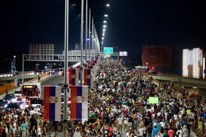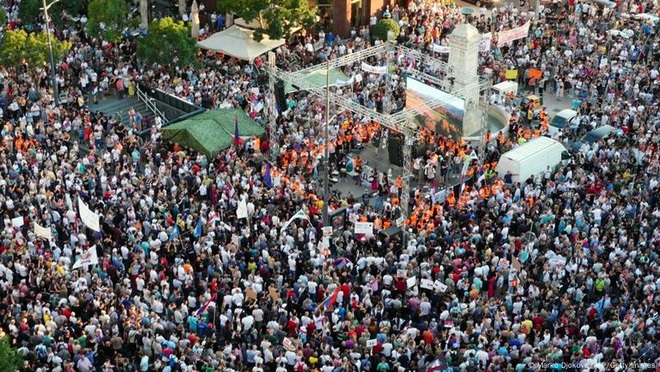 Hình ảnh từ cuộc biểu tình của 27.000 người ở Serbia. Ảnh: Reuters/DW.