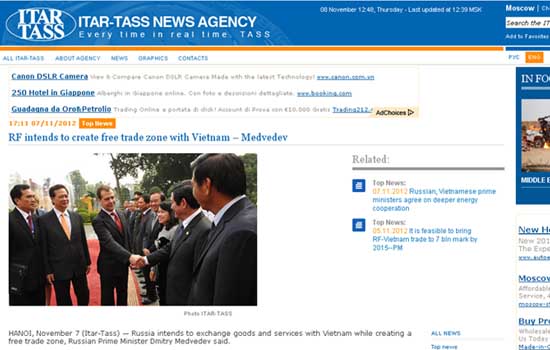 ITAR-TASS đưa tin về chuyến thăm Việt Nam của Thủ tướng Dmitry Medvedev.