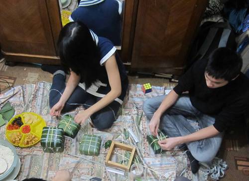 Thế hệ trẻ người Việt ở Nga tập gói bánh chưng