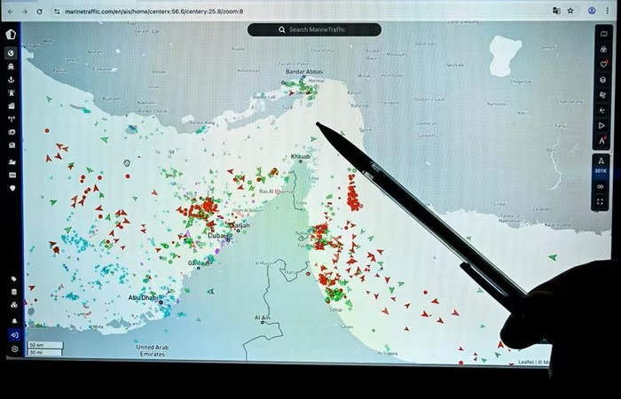 Sau khi Iran tuyên bố phong tỏa, các tàu không dám mạo hiểm đi qua eo Hormuz. Ảnh: NYP.