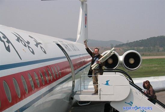 Một du khách bước lên chiếc máy bay thuộc hãng hàng không Air Koryo của Triều Tiên.
