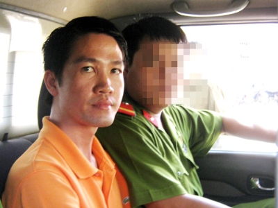 Công an dẫn giải Trần Văn Sự ra xe.