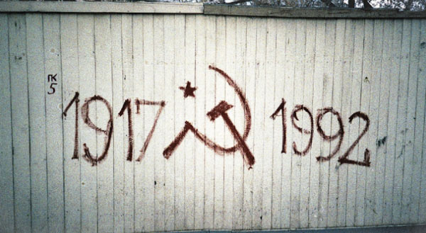 Một bức graffiti được vẽ trên hàng rào gần tòa "Nhà Trắng Nga" ở thủ đô Moscow năm 1992.