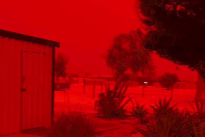 Chuyên gia khí tượng Angus Hines cho biết hiện tượng bầu trời đỏ sẫm trên xuất phát từ 2 yếu tố chính. Đầu tiên là địa hình. Miền Bắc Tây Australia nổi tiếng với đất đỏ giàu sắt, hình thành qua hàng triệu năm bị oxy hóa. Gió mạnh đã khuấy động lớp đất khô ở vùng Pilbara phía nam, thổi bụi bay vào khu vực Gascoyne, xa tới Carnarvon. Mây dày đặc là yếu tố thứ hai. Theo ông Angus Hines, vùng Pilbara và Gascoyne thường có bão bụi, thường xảy ra dưới bầu trời xanh. Đợt cuối tháng 3 vừa rồi, bão bụi lại trùng với lớp mây dày, khiến ánh sáng bị chặn lại và tạo cảm giác u ám. Ảnh: Shark Bay News & Views.
